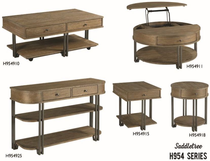 The Saddletree collection includes a round cocktail table, rectangular cocktail table, end table, chairside table, and sofa table.Read More