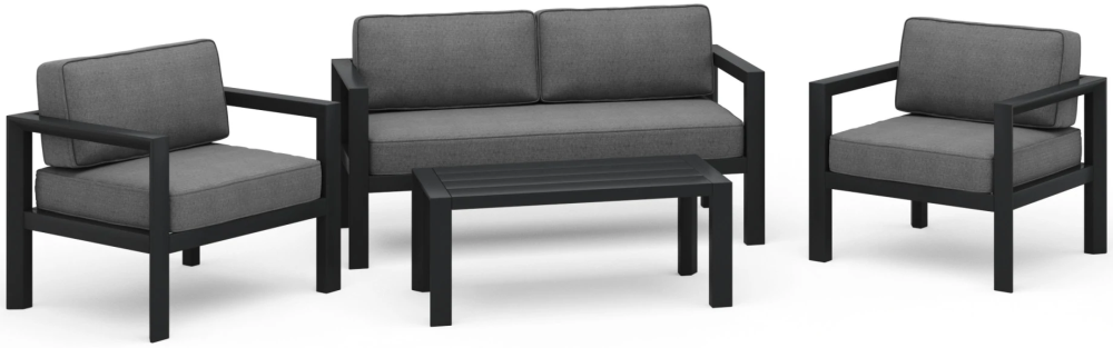 Set includes a loveseat, 2 chairs, and a coffee table.