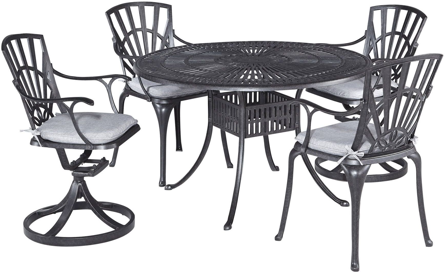 The Grenada Patio Collection will help you create paradise in your own backyard. This 5-piece dining group includes a 48"D table, two swivel chairs and two arm chairs with cushions to bring any small group closer together.Read More