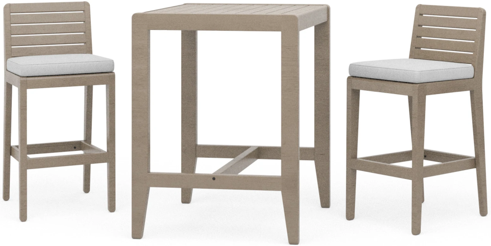 Any outdoor space becomes a desirable destination for entertaining or relaxing with this Homestyles Sustain 3-Piece Outdoor Set. This bistro table with two barstools bring up to two people closer together to enjoy clean, classic styling and cushioned comfort. The water-resistant, gray acacia wood with a UV-resistant finish delivers solid performance year after year.Read More
