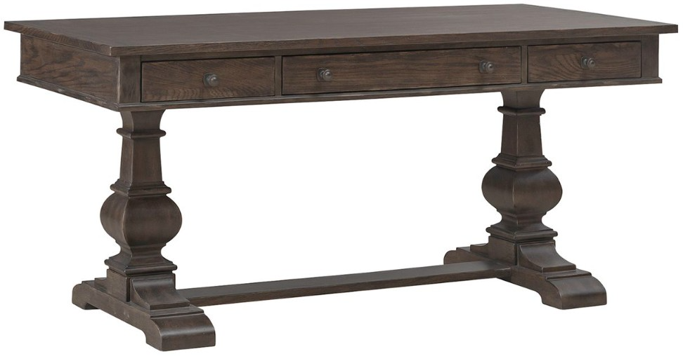 Take the stress out of work with the Paradise Valley writing desk. Crafted with rubberwood solids and split heart white oak veneers, this piece features a saddle brown finish. The top of the desk has a bread board veneer pattern for design appeal.Read More