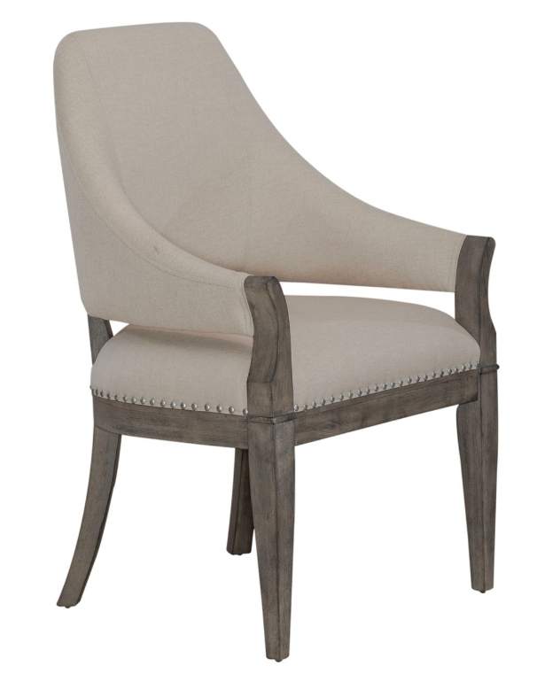Comfort starts and ends with the Westfield upholstered armchair. Crafted with excellence using rubberwood solids, this chair features a Havana Brown finish and Sand colored upholstery. Nail head accents line the seat trim.Read More
