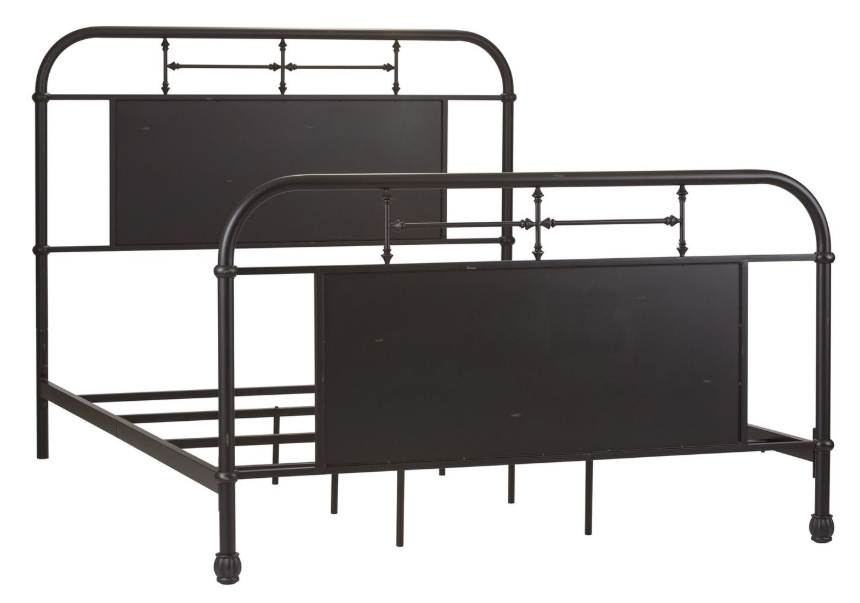 Add a unique look to your home with the Vintage Series queen metal bed. Crafted of metal tube and finished in a beautiful antique black with wear thru. The headboard and footboard feature a softly shaped cap rail and turned metal spindles highlighting a center panel.Read More