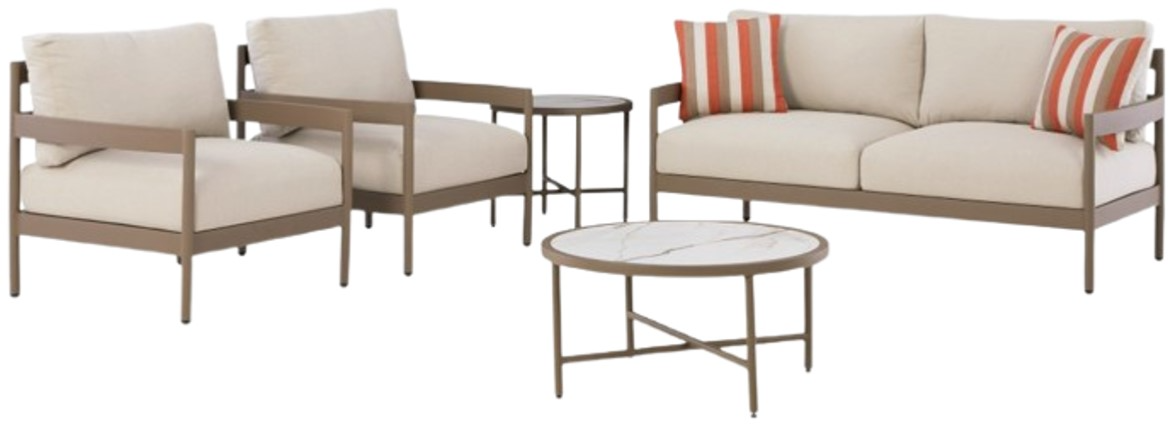 Indulgently comfortable furniture shouldn't be limited to inside spaces. Create your own outdoor oasis with this 5-piece outdoor ensemble. It's a study in form and function, with clean-lined, durable aluminum frames that are ready for many seasons of fun in the sun.Read More