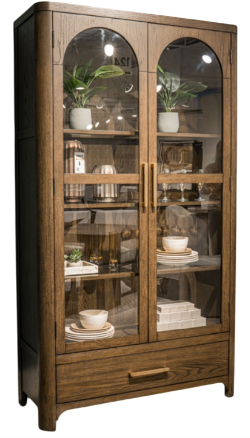 The Radkin display cabinet features a warm, rustic finish and clean-lined silhouette—ideal for showcasing décor or storing dining essentials in any spaces. This cabinet is perfect for catalog entries that emphasize warmth, versatility, and clean display options.Read More